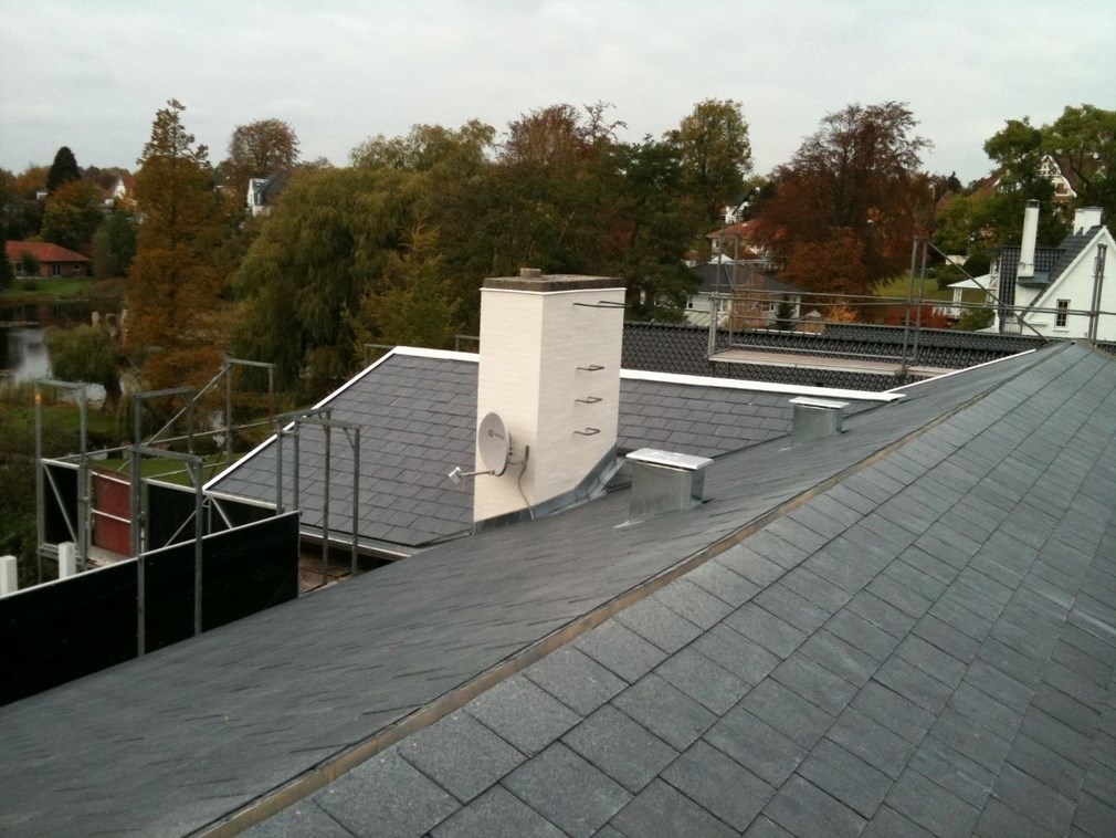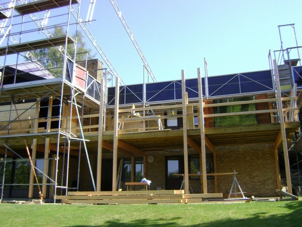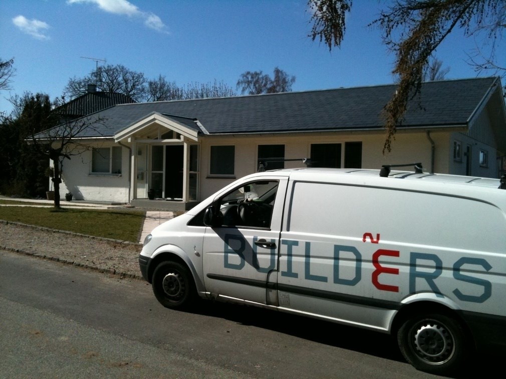 Ombygning af privat villa. Facaderenovering, vinduesudskiftning (egetræ), tagudskiftning (naturskifer), zinktagrender, altan (Ipé brædder, mahogni/glasværn), indvendig ombygning.